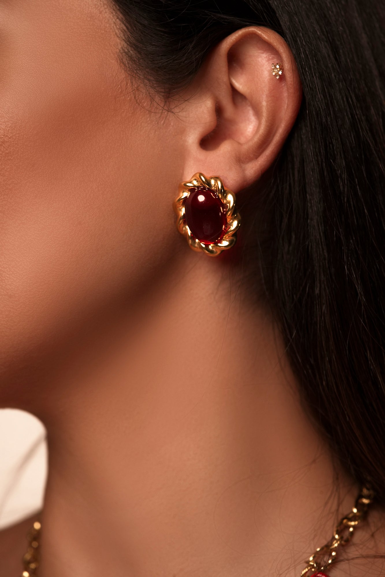 Embrace bold elegance with the Mystic Agate Oval Earrings, a statement piece that combines the beauty of nature with modern design. These striking earrings feature an oval-shaped agate stone, available in classic black or vibrant red, set in a sleek 18kt gold-plated stainless-steel frame. Known for its unique patterns, the agate stone adds a touch of mystique and sophistication to your look. Hypoallergenic and water-friendly, these earrings are crafted for all-day comfort and lasting shine. Perfect for women who appreciate versatile, eye-catching jewelry, these earrings effortlessly elevate any outfit with their rich color and chic design.