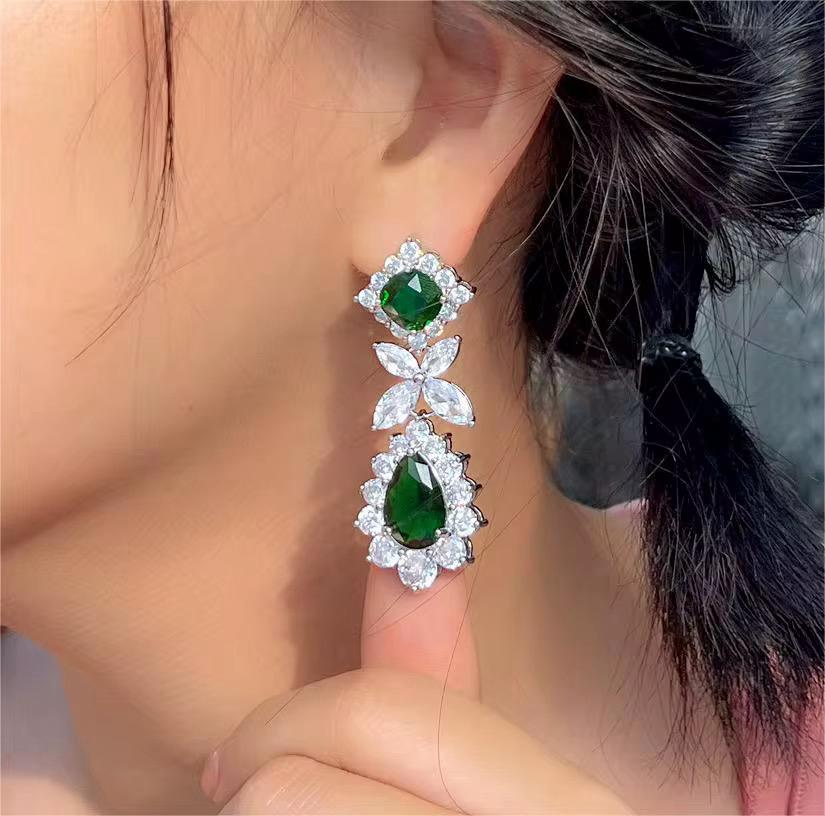 Inspired by the beauty of nature, the Emerald Cascade Dangle Earrings feature an exquisite leaf and flower design, accented with brilliant green water-drop zircon stones that shimmer with every movement. Crafted with high-quality zircon and finished in premium silver plating, these earrings exude luxury while ensuring a non-tarnish, long-lasting shine. The elegant long dangle silhouette adds a touch of sophistication, making them perfect for both evening glamour and everyday elegance.