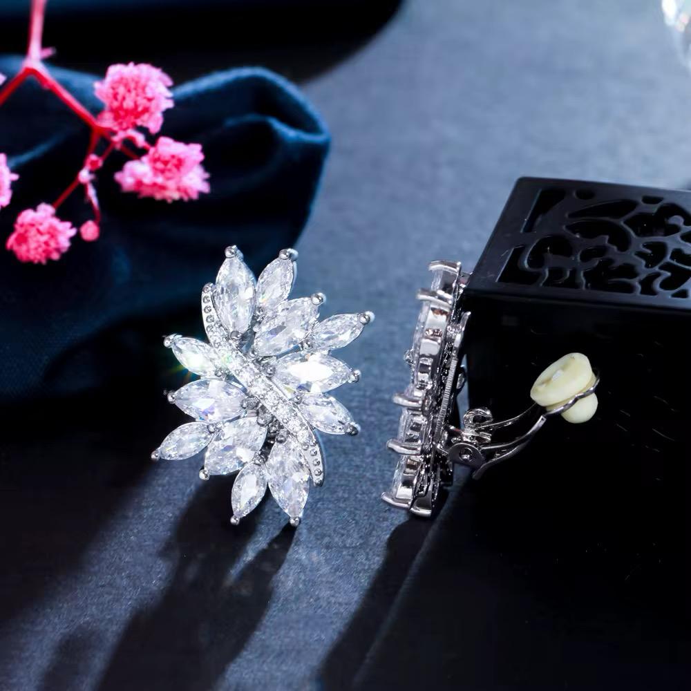 Crafted with premium materials and a non-tarnish finish, these earrings offer the luxury of bridal jewelry with the versatility of clip-on comfort. Whether you're walking down the aisle or elevating your evening look, these sparkling leaf earrings are designed to make you shine.
