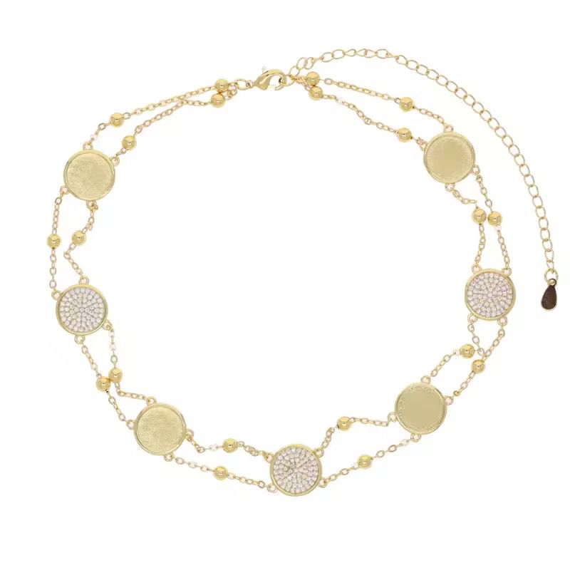 Sleek, radiant, and endlessly versatile — the Circa Gleam Set blends bold geometry with refined luxury. Featuring a double-chain design linked by polished round motifs, this set includes a necklace and bracelet, both crafted in 18kt PVD gold-plated h for unmatched durability and shine.