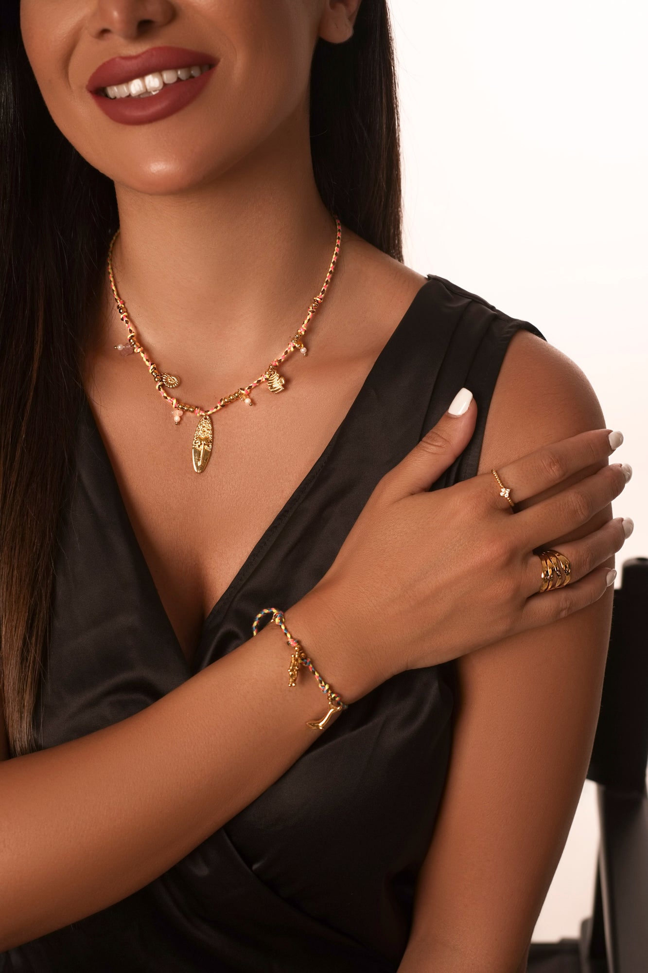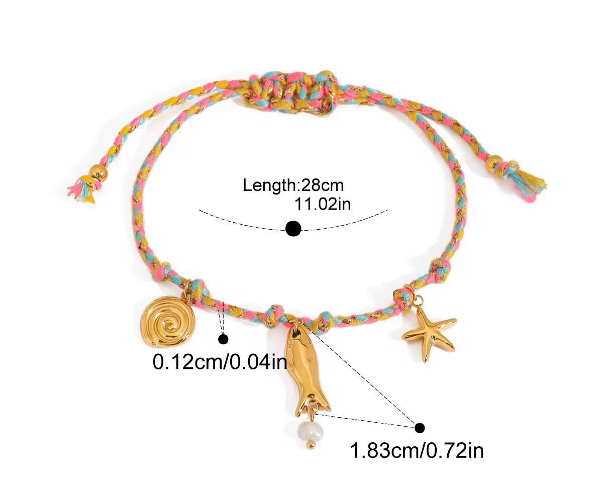 Embrace the essence of summer with the Golden Tide Bracelet—a vibrant fusion of colorful beads and ocean-inspired charms. Designed for beach lovers and adventure seekers, this handcrafted piece features hypoallergenic, water-friendly 18kt gold-plated charms, ensuring a tarnish-free shine wherever the waves take you. Whether you're strolling the shore or soaking up the sun, this lightweight and stylish bracelet is the perfect accessory to elevate your summer look.