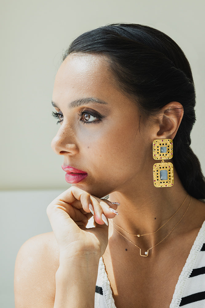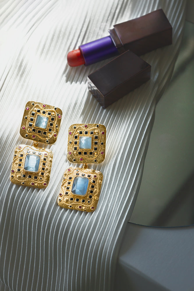 Each piece is coated with luxurious 18kt gold, adding a radiant finish that enhances their sophisticated appeal. Perfect for adding a touch of elegance to any outfit, these earrings are a beautiful blend of natural elements and artisanal expertise.