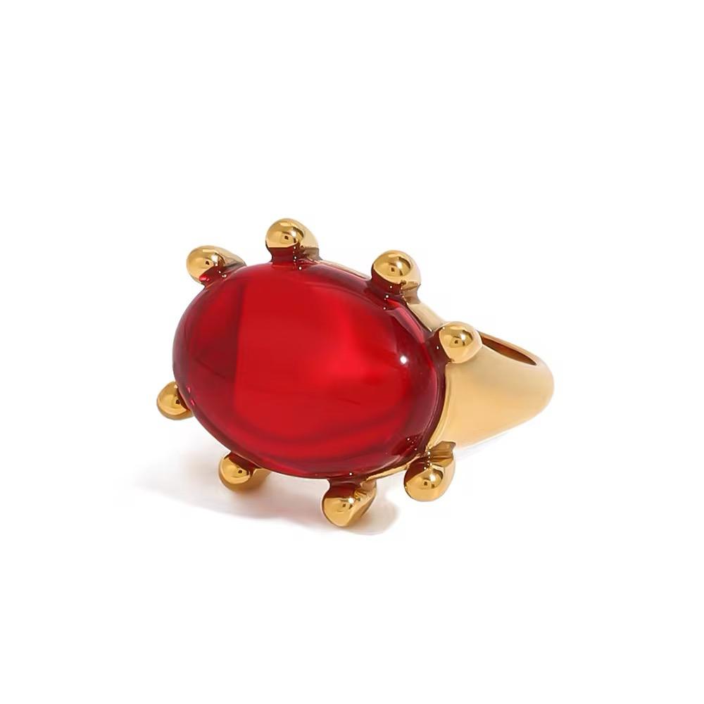 Make a bold statement with the Opulent Gemstone Ring, a perfect fusion of vintage charm and modern luxury. This chunky, eye-catching design features a striking onyx centerpiece, available in deep red, rich green, or elegant shell, set in 18K gold-plated hypoallergenic metal. Designed to be water-friendly and gentle on sensitive skin, this ring is made for everyday glamour or special occasions. Whether you're drawn to the passion of red, the mystique of green, or the timeless beauty of shell, this ring is the ultimate power piece to elevate any look. Own your elegance, wear your confidence!