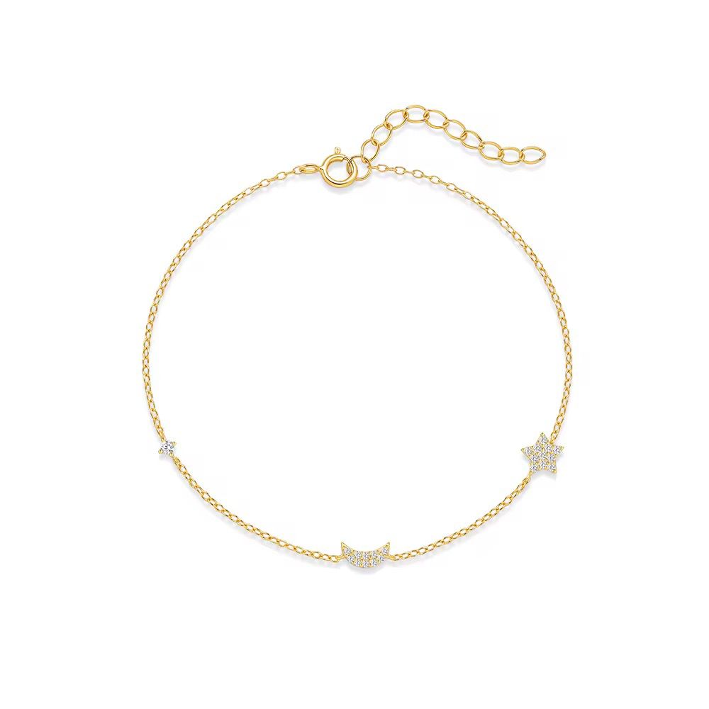 Discover the magic of the night sky with Celestia Glow — dainty chain bracelets crafted from sterling silver (925) and enhanced with a luminous layer of PVD gold plating for lasting brilliance. Each bracelet features a delicate star and moon pendant, accented with a radiant white zircon to evoke the sparkle of starlight. Hypoallergenic and water-friendly, Celestia Glow blends celestial charm with everyday durability, perfect for dreamers, romantics, and modern minimalists alike.