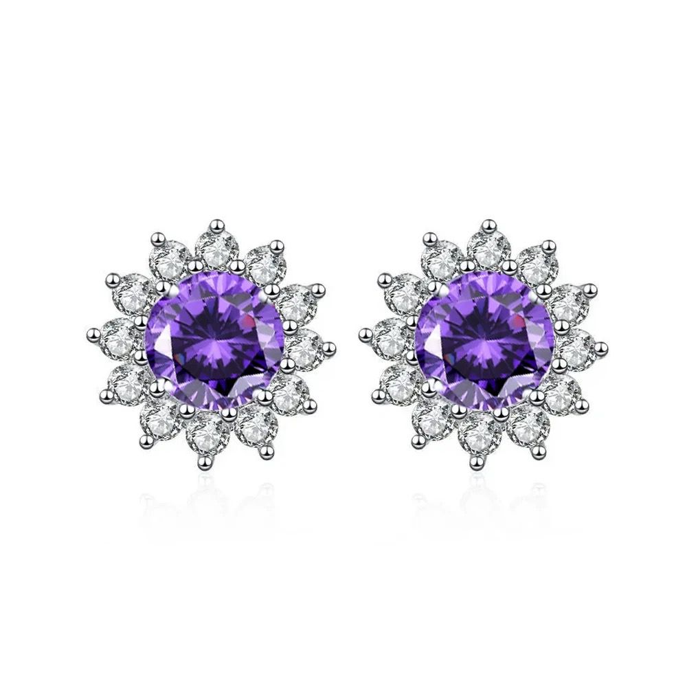 Frosted Blossom Purple Zirconia Stud Silver 925 Earrings
