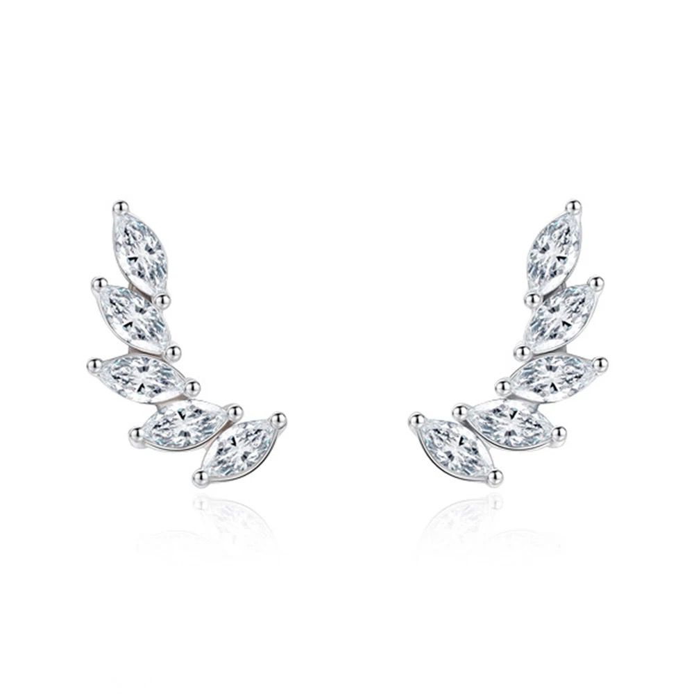 The ear studs feature marquise-cut cubic zirconia crystals meticulously arranged in an arc, resembling the soft curve of leaves catching sunlight. These earrings offer a subtle yet sophisticated shine, making them a versatile accessory for both everyday wear and special occasions. The 925 sterling silver setting ensures durability and hypoallergenic comfort, while the dainty size of the studs provides a perfect balance of elegance and simplicity.